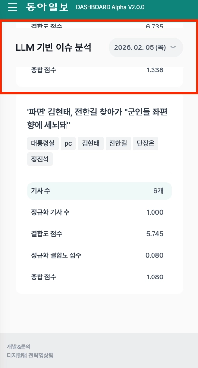 스크롤 아래로 하면서 서비스 헤더가 동아일보 메인 헤더에 먹힘.