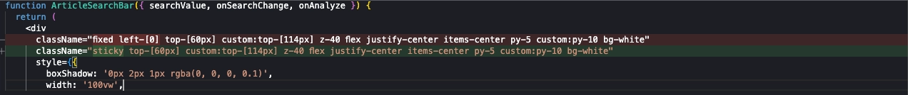 목표 서비스 헤더(ArticleSearchBar, DReportHeader, IssuePageHeader, TopPageHeader)를 sticky로 설정해서 노는거 방지. (웹에서는 해결. 모바일은 그대로 오류 발생)