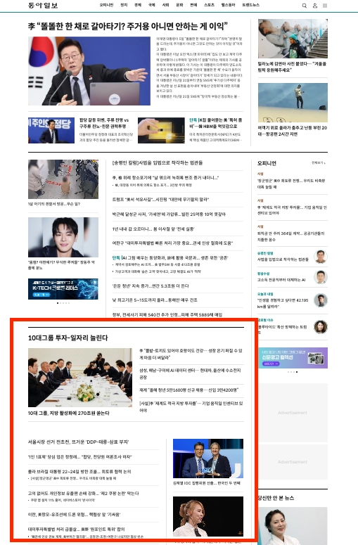 동아닷컴 메인 페이지에서 미리 정의된 섹션 (MAIN_PAGE_POSITIONS)에서 기사 긁어옴. 변수 잡아놓고 ‘헤드라인’, ‘이슈 뉴스’, ‘서브 뉴스’ 등 맞춰서 수집