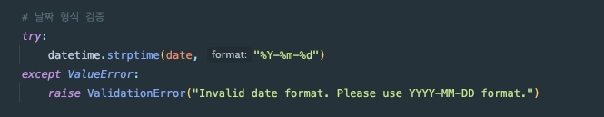 raise ValidationError("Invalid date format. Please use YYYY-MM-DD format.")