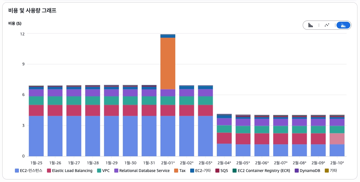 AWS 비용 모니터링 결과 (1주일)