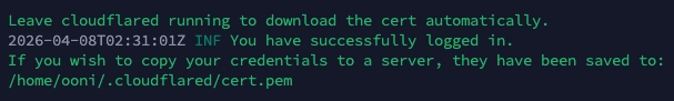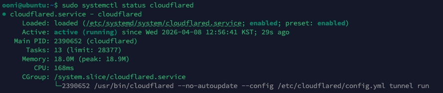 credentials-file: /home/ooni/.cloudflared/{터널 ID}.json