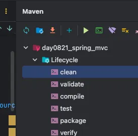혹은 터미널에서 pom.xml이 있는 경로로 이동한 뒤 mvn clean 명령어를 입력해도 된다.