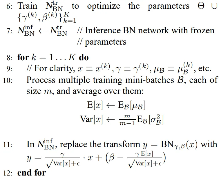 이러한 문제를 미리 저장해둔 미니 배치의 이동 평균(Moving Average)을 사용하여 해결한다. 즉, inference 전에 학습 시에 미리 미니 배치를 뽑을 때 Sample Mean 및 Sample Variance 를 이용하여 각각의 이동 평균을 구해놔야한다.