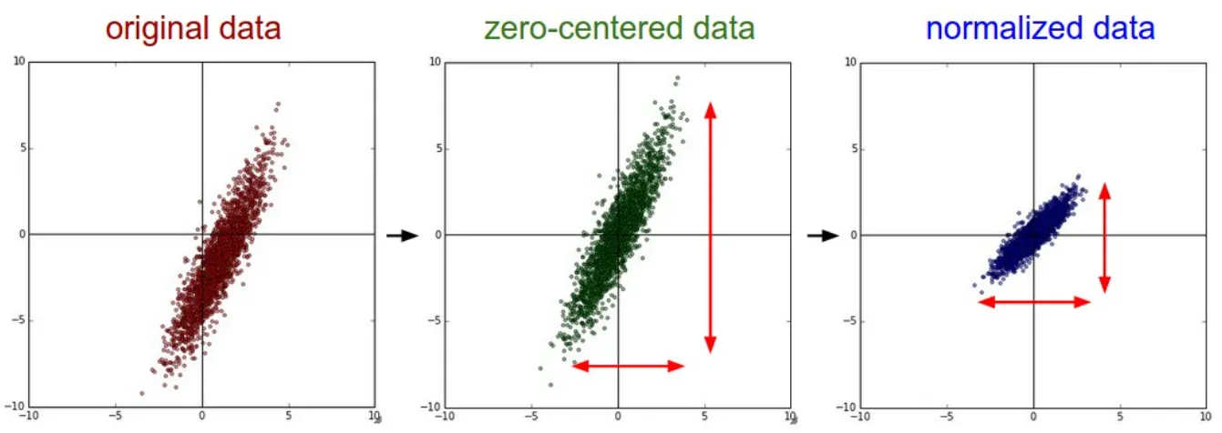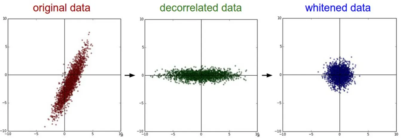 위의 현상을 막는 방법, 즉 다른 분포를 가지는 두 데이터를 같은 분포를 가질 수 있게 변환을 해주는 방법으로 Normalization과 Whitening을 생각해 볼 수 있다.