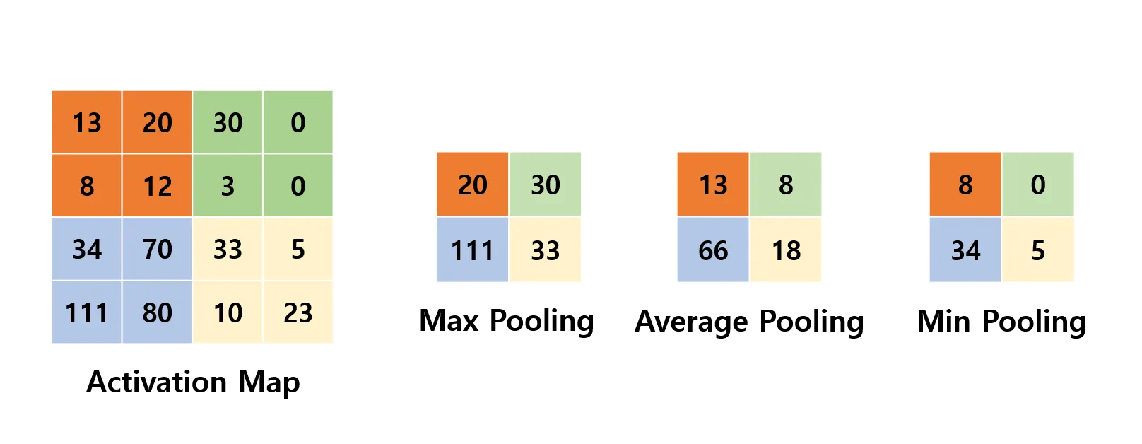 → Pooling은 원본 이미지를 유지하며 크기를 줄이는 용도로 사용된다.