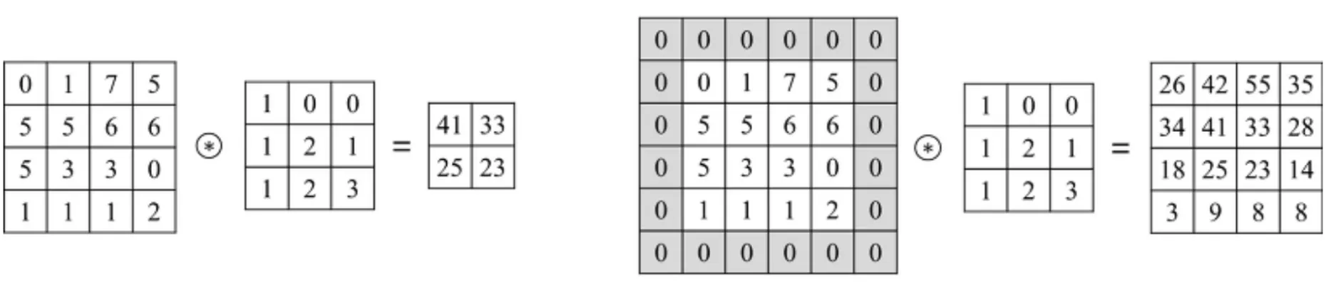 (왼쪽) padding을 안한 경우, (오른쪽) Zero-padding인 경우