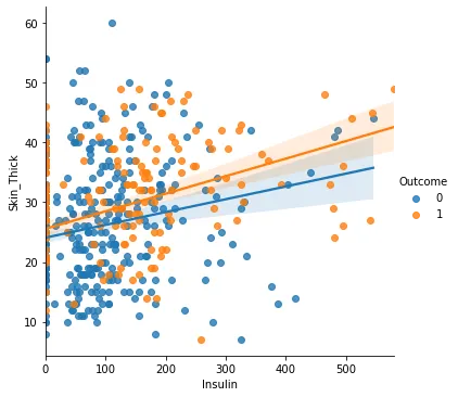 추가적으로 얻은 정보 : 인슐린(Insulin) 수치가 증가함에 따라 피부의 두께도 두꺼워진다, BMI가 높아질수록 혈압, 피부의 두께가 두꺼워진다, 나이가 많아질수록 혈압이 높아진다.