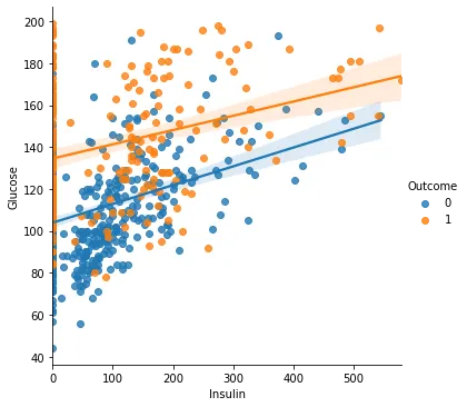 종속 변수 : Outcome, Insulin