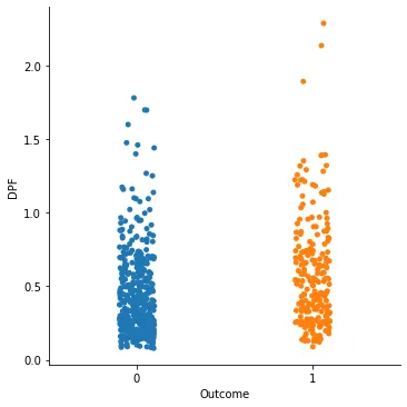 sns.catplot(x = "Outcome", y = "DPF", data=di_data3)